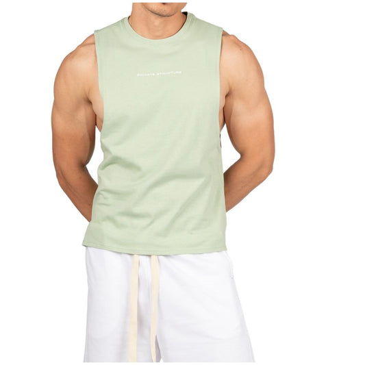 Private Structure เสื้อกล้ามออกกำลังกาย Crew Neck Easy Fit Muscle Tee – Salt Green [4720] / นายแบบอก 41" Size M