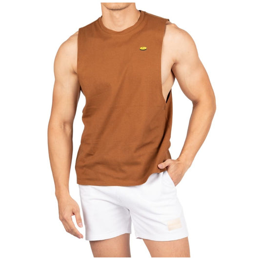 Private Structure เสื้อแขนกุด Crew Neck Easy Fit Muscle Tee – Brown [4719] / นายแบบอก 41" Size M
